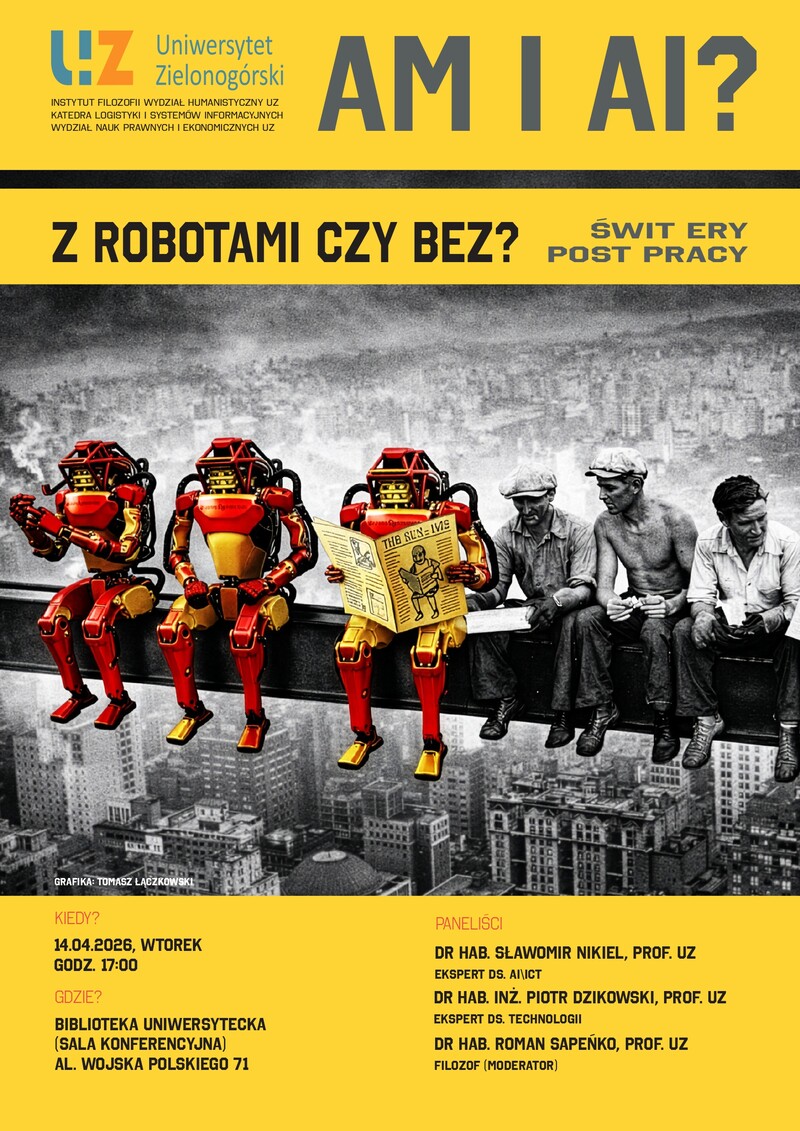 Zapraszamy na kolejne spotkanie z cyklu „AM I AI?". Najbliższa debata odbędzie się 14 kwietnia o godz. 17.00 w auli Biblioteki Uniwersyteckiej UZ.
