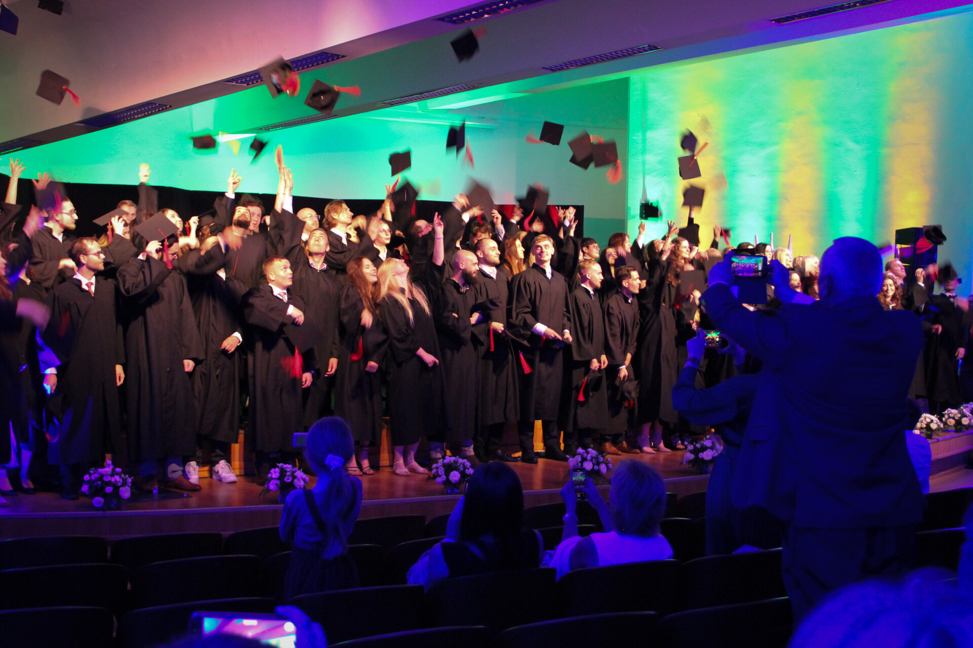 Absolwenci kierunku lekarskiego 2023 wykonują tradycyjny rzut biretem; fot. M. Adamczewski
